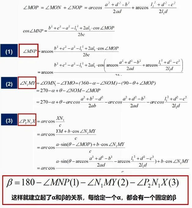 随后,课题组与北京大学数学学院阳恩林教授团队合作,根据三角函数和方程运算(图4),只需要在X线上测量5个线段长度和3个角度就可以建立起α和β的关系。线段长度分别为OM (a)、MN (b)、NP (c)、ON (d)、OP (l1),角度为X线上实际的θ1、PI 和PT。