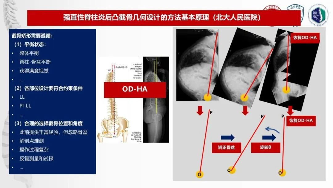 脊柱矫形学是美学、几何学和生物力学完美交叉融合的学科。强直性脊柱炎(AS)后凸畸形是骨科领域的难点和热点,而重度/极重度AS后凸截骨矫形是脊柱外科乃至整个骨科领域难度最高、风险最大而复杂的手术之一。科学的截骨矫形手术对改善AS后凸畸形患者的生活质量至关重要,需遵循序列完美、力线平衡、视觉舒适的原则,因此选择合适的截骨部位、适当的截骨范围和有效的截骨方式成为矢状面序列重建的关键。术前规划常需要借助几何模型,此前该领域一些专家设计了不同截骨位置和截骨角度预测方案,为脊柱医生提供了大量借鉴,但时常忽略骨盆后旋状态、设计流程复杂、涉及大量测算数据,对于初学者而言理解与应用也存在较大难度。