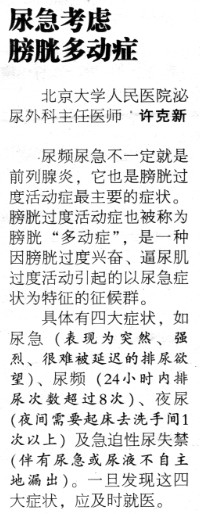 尿急考虑膀胱多动症