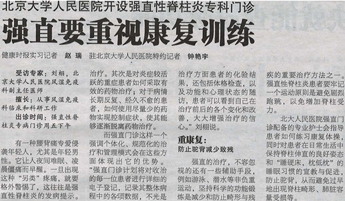 健康时报:我院开设强直性脊柱炎专科门诊——强直要重视康复训练