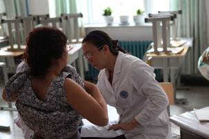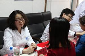 2015年3月7日医疗队全体队员,在当地教育局、卫生局和人民医院的大力配合下,于霍林郭勒市第一小学对全市近400名女教师进行了健康宣讲和免费义诊活动。首先由医疗队乳腺外科刘淼副主任医师、胃肠外科高志冬主治医师、神经内科刘扬主治医师对于“乳腺疾病”、“甲状腺疾病”、“脑卒中疾病”进行了健康主题讲座,包括疾病的筛查、治疗、康复和预防等内容,能够容纳400余人的多功能教室内座无虚席。随后医疗队联合霍林格勒市人民医院呼吸内科、妇科、骨科等专家,对所有女教师进行了免费查体和专家咨询。医疗队成员周围被等待查体的患者围的“水泄不通”,下午5时义诊临近结束时,仍然有很多教师因为刚下课而匆匆赶来,当得知医疗队还要在这里工作2个月,都特别高兴,纷纷询问具体的出诊时间。一天下来虽然很辛苦,但看到自己的工作这么受当地百姓欢迎,大家内心都感到很充实。