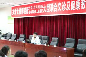 北京大学人民医院第十三批内蒙古对口支援医疗队于2015年3月初抵达内蒙古霍林郭勒市人民医院后,受到当地医院和患者的热切欢迎。在积极配合当地医疗机构开展医疗工作的同时,通过与当地医疗管理人员、医务人员和患者人群的深入沟通后,发现当地人群对于女性常见疾病如乳腺疾病、甲状腺疾病的早筛早查重视不够,且有高盐、高脂的饮食习惯,而这正是脑血管疾病的高危因素,但上述疾病筛查都未列入当地常规查体项目。时值“三八国际妇女节”之际,医疗队结合当地群众的需求、医疗队员的专业特长,联合霍林郭勒市卫生局、教育局,霍林郭勒市人民医院开展了女教师大型健康宣讲义诊活动。