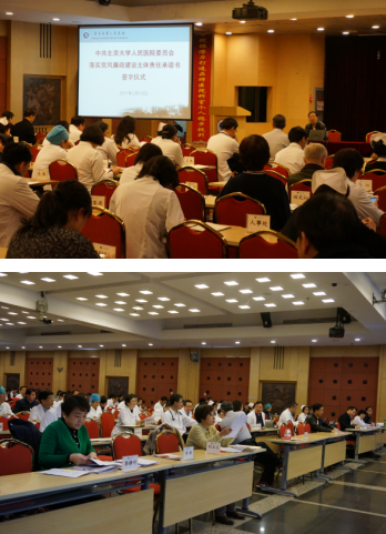 为深入贯彻落实十八大以来党中央反腐倡廉的新精神,按照上级要求,北京大学人民医院于2017年2月13日下午举行了《落实党风廉政建设主体责任承诺书》签字仪式。医院党政领导班子全体成员、各临床、医技科室主任、行政处室主任(处长)和党支部书记参加了签字仪式。签字仪式由党委院长办公室韩娜主任主持。