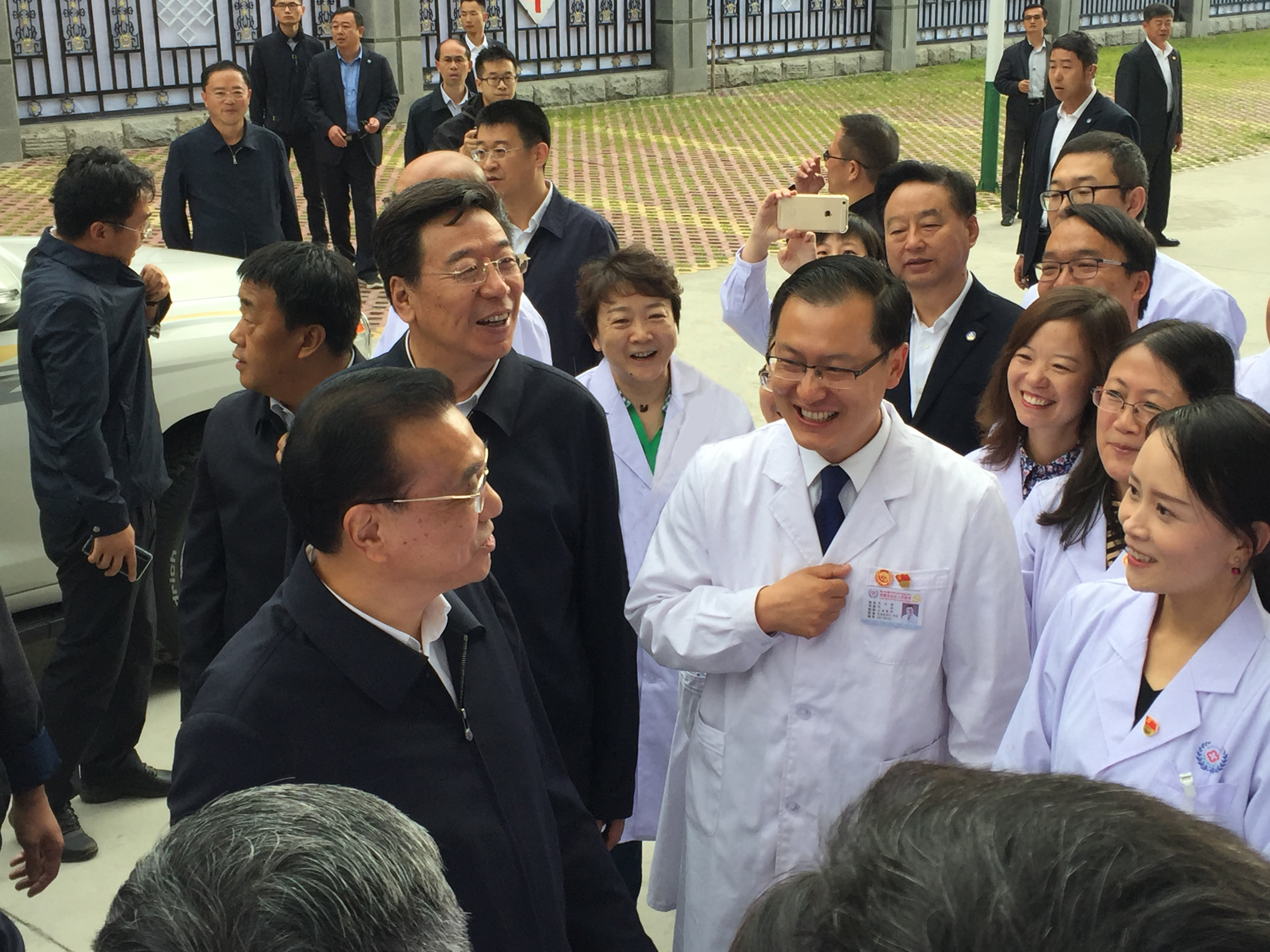 李克强总理与大家一一握手,并亲切问询大家的情况,当得知专家们来自北京大学医学部的各个附属医院时,总理高兴地说:“那我们是校友啊!”大家听了都倍感亲切。