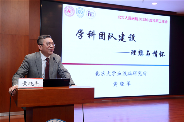 特邀讲座环节邀请北京大学血研所黄晓军所长做《学科团队建设——理想与情怀》的报告