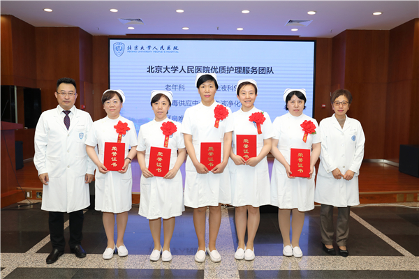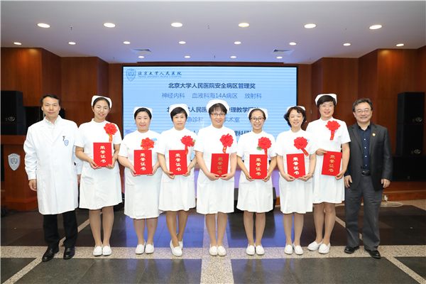张俊副院长、刘玉兰副院长为“北京大学人民医院优质护理服务团队”获奖代表颁奖