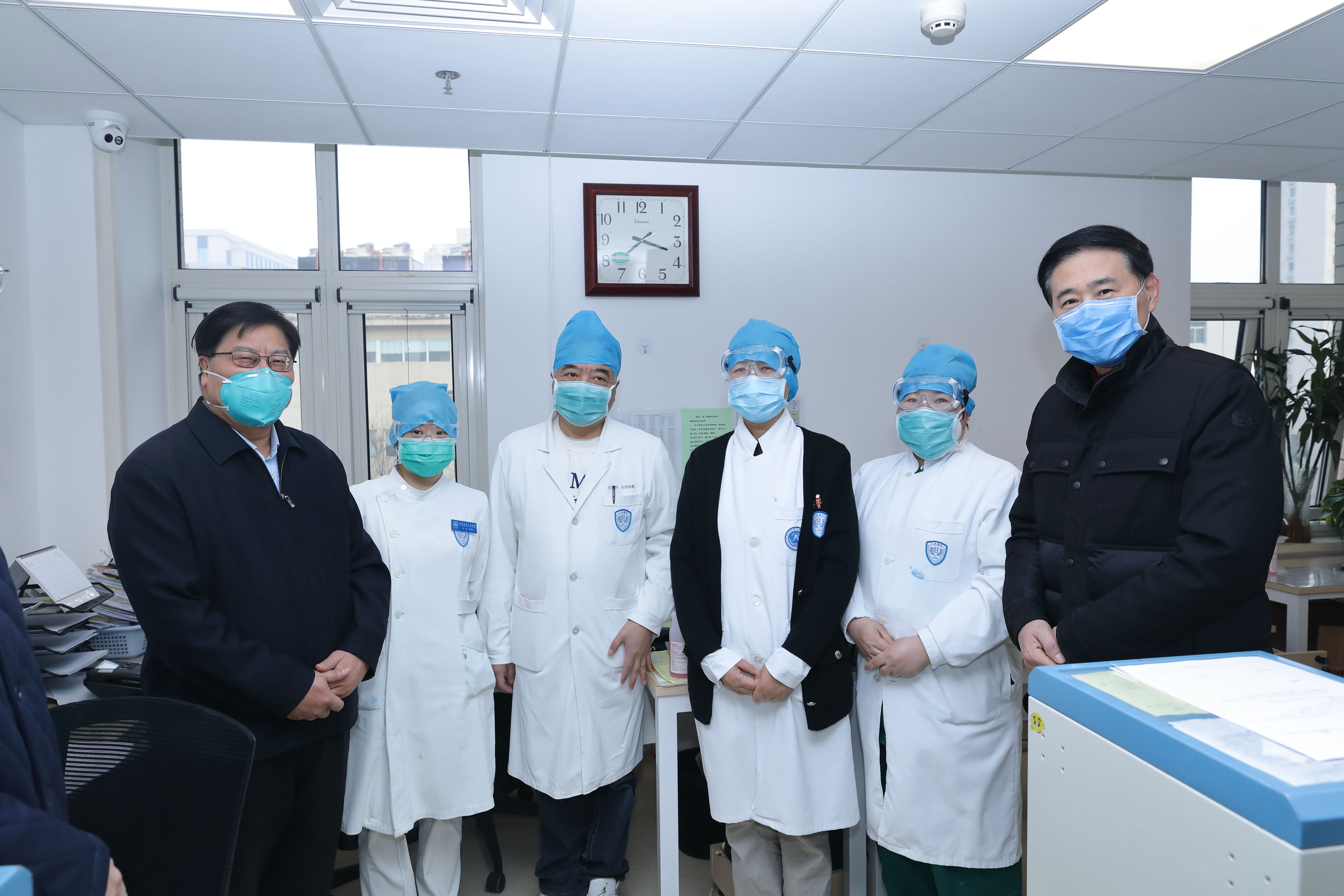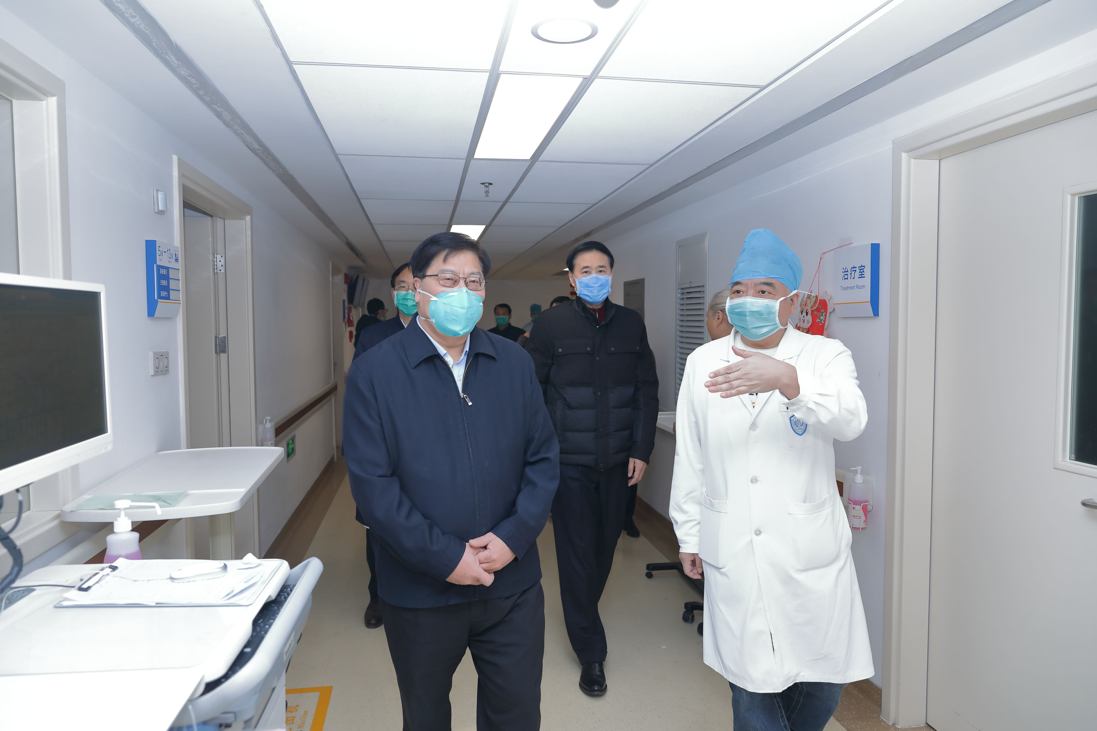 随后,邱水平书记、刘玉村书记一行来到发热门诊。作为直面发热病人、抗击肺炎疫情的第一道“关卡”,春节期间的发热门诊比往常更加忙碌。邱水平书记、刘玉村书记仔细询问了发热门诊接诊病人情况和医务人员工作情况,听取了感染科主任高燕、护士长李颖的工作情况汇报,并给坚守在一线的医务人员送去新春祝福和亲切关怀。