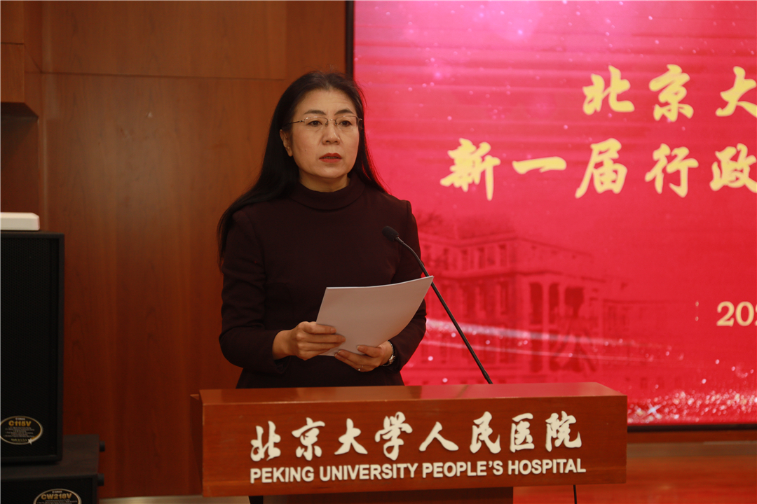 北京大学党委组织部宁琦部长代表学校党委组织部对北京大学人民医院行政班子换届工作进行说明,宣读《北京大学关于人民医院(第二临床医学院)行政班子任职的通知》。