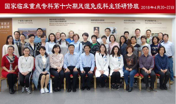 依托国家临床重点专科建设项目,第十六期风湿免疫科主任高级研修班于2018年4月20日至22日在北京大学人民医院举行。来自全国二十多个省市30家医院的风湿科主任或副主任参加。