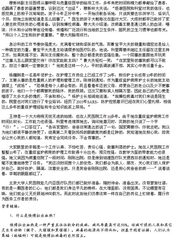 北医:人民医院组建赴几内亚抗击埃博拉病毒医疗队