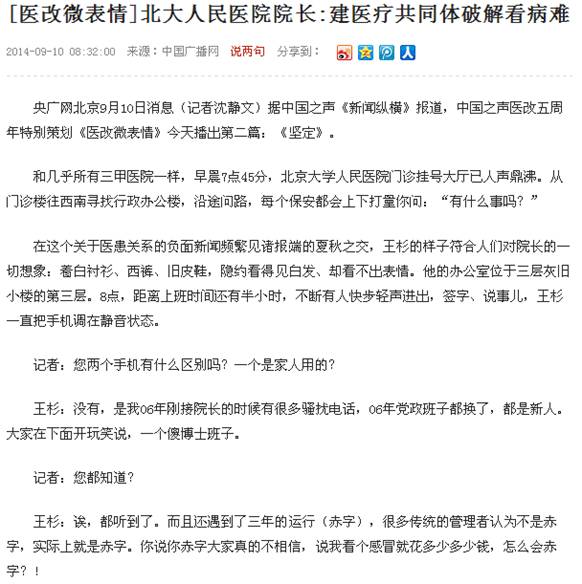 央广网专访王杉院长:建医疗共同体破解看病难