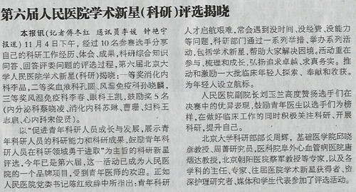 北医报:第六届人民医院学术新星(科研)评选揭晓