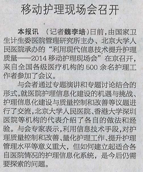 健康报:移动护理现场会召开