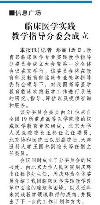 健康报、现代教育报:临床医学实践教学指导分委会成立
