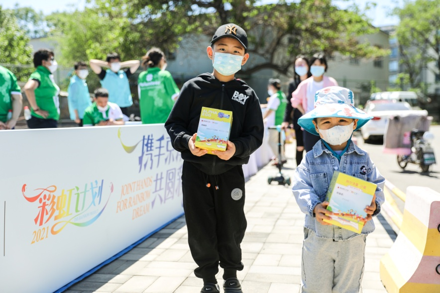 这是北京大学人民医院“携手京津冀,共圆彩虹梦2021年度彩虹计划六一礼物发放活动现场,这已经是“彩虹计划”在北京大学人民医院的第四个年头。