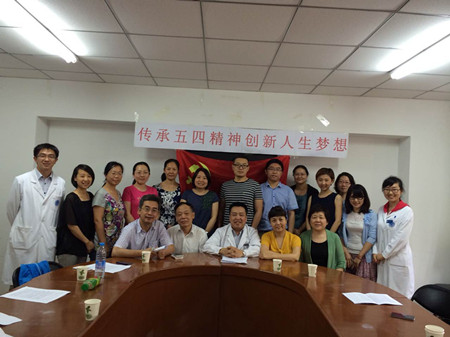在支部党员自发学习的同时,支部还专门邀请了现任中华医学会皮肤性病学分会主任委员,北京大学皮肤病与性病学系系主任、北京大学人民医院皮肤科张建中主任为大家做主题演讲。张建中主任首先带领大家重温了习总书记的重要讲话内容,他从五四精神讲起,把国家强大、社会变革以及民主与和谐的关系为支部成员进行了精彩的阐述。在谈到总书记讲话中十二个中国优秀传统文化的基因,张建中主任也分别从国家层面、社会层面、公民层面进行解读。通过张建中主任的发言,大家再次回顾了总书记在讲话中对广大青年的期望:“从现在做起,从自己做起,勤学、修德、明辨、笃实,使社会主义核心价值观成为自己的基本遵循,并身体力行大力将其推广到全社会去,努力在实现中国梦的伟大实践中创造自己的精彩人生”。张建中主任的讲话饱含着对国家民族的热爱和对青年学者的殷殷期望,博得了大家阵阵的掌声。