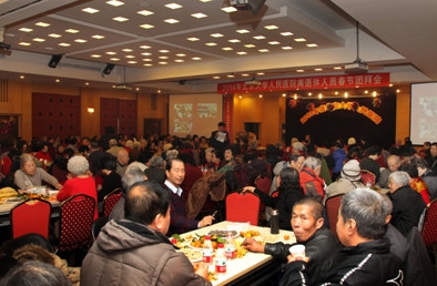 距离团拜会开始还有半个小时,会场就已经座无虚席,气氛热闹温馨。老同志们相互见了面都有很多话要聊,谈谈退休后的生活,谈谈以前工作的轶事,谈谈医院现在的发展。会上,王杉院长、陈红书记、陈红松副书记先后致辞,向所有离退休老师拜年,致以新春问候和美好祝福,并汇报了一年来医院取得的进步和成绩。王俊安处长汇报了一年来离退休工作处的情况,并提出了多条工作改进的方案,受到老同志们的热烈欢迎。