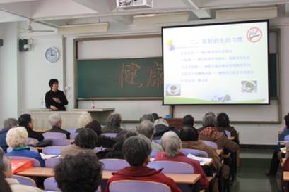 人们生活水平的提高,我国已逐渐步入老龄化社会,骨质疏松严重威胁了老年人的健康。为进一步普及健康知识,提高老年人的生活质量和自我保健能力,北京大学人民医院于2013年11月20日下午在北京交通大学举行健康讲座《骨质疏松症的防治》。老年科刘杰主任医师作为主讲人,五十余名听众现场参与。