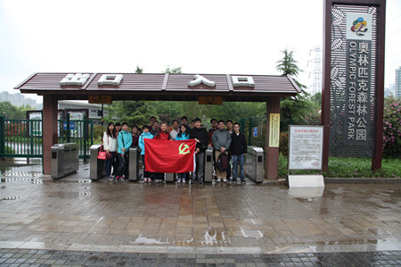 2014年5月11日,影像医学党支部组织党员及团员在奥林匹克森林公园开展了一次“健康、环保、孝老”为主题的活动。尽管下着雨,但是没有影响大家参加活动的热情,大家都遵照主题乘坐公共交通工具聚集到目的地。
