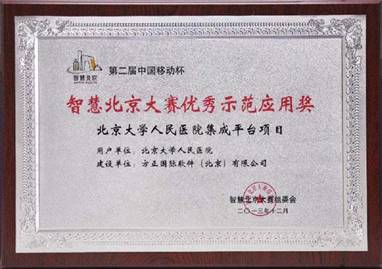 通过专家初审、路演讲解、公众评审和综合评审等多个环节,北京大学人民医院集成平台项目得到包括评审专家和社会大众等各方面的高度认可,最终获得第二届“智慧北京大赛优秀示范应用奖”。这是本次大赛为数不多的医疗信息化获奖项目,再度体现了人民医院在医疗信息化领域的领先实力。