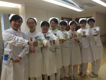 短片播放后陈红主任代表心脏中心感谢护士们辛勤的付出,真心希望大家有一份阳光的心态,绽放出青春的美丽。当她讲到“军功章里有你的一半也有我的一半”时,全场再次响起了热烈的掌声。最后,在场的所有医生亲手为每位护士送上中心精心准备的小礼物——“水杯”。这个礼物虽小但是意义很深刻,每个水杯都精心刻上了心脏中心的标识、一个可爱的护士形象和每个护士自己的名字,希望护士们在平日繁忙、紧张的工作之余不要忘记喝杯清茶、饮杯热水,在守护患者健康的同时也不要忘记自己。