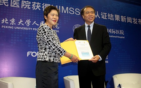 经过HIMSS专家评审组2天的实地调研,5月13日,北京大学人民医院成为亚洲第二家、国内第一家通过HIMSS7级评审的医院。5月23日上午,在大连举行的2014年中华医院信息网络大会上,北京大学人民医院正式获颁HIMSS7级证书。在美国也仅有3.1%的医院达到7级水平,而除美国以外全球仅有4家。