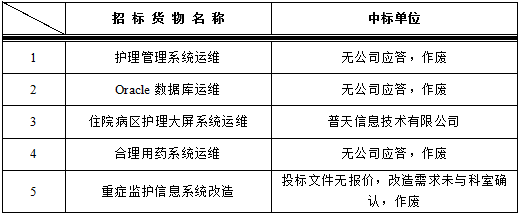 我院于2017年5月19日对以下信息运维项目进行院内谈判,中标结果如下: