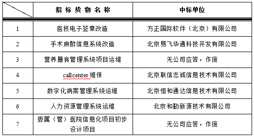 我院于2017年6月29日对以下信息系统运维改造项目进行院内谈判,中标结果如下: