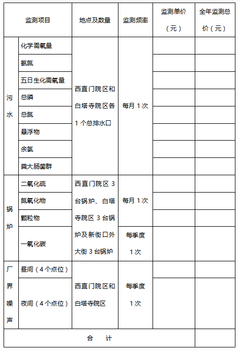 服务概况:北京大学人民医院需要委托北京市环保局认可的具有相应资质的社会环境监测机构进行污染物排放监测,现进行公开邀请招标,欢迎符合条件的投标人参加投标。