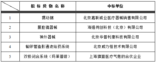 我院于2017年11月23日对以下医疗设备进行院内谈判,中标结果如下: