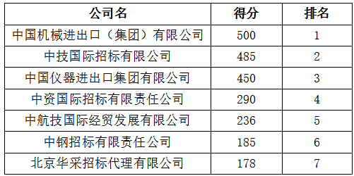跟据评分结果,及实际招标工作情况,决定选取排名前两家:中国机械进出口(集团)有限公司、中技国际招标有限公司,作为我院2018年-2020年招标代理公司。