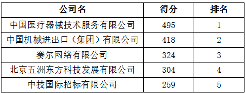 根据评分结果,决定选取排名第一名:中国医疗器械技术服务有限公司,作为我院2018年-2020年进出口代理公司。