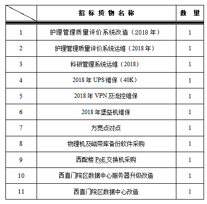 一、 为满足医院信息系统建设需求,信息中心拟对以下信息系统运维改造进行谈判采购,采购项目的内容及数量: