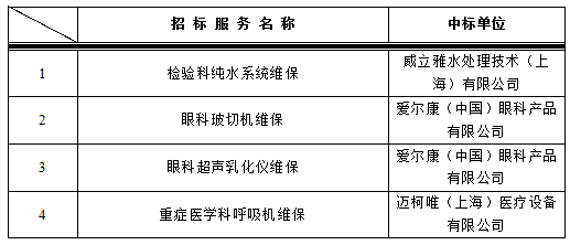 我院于2018年6月8日对以下维保进行院内谈判,中标结果如下: