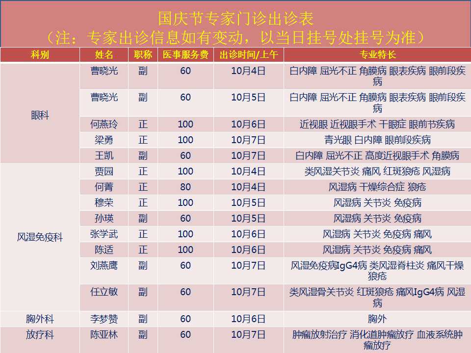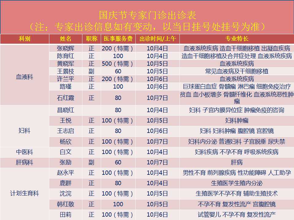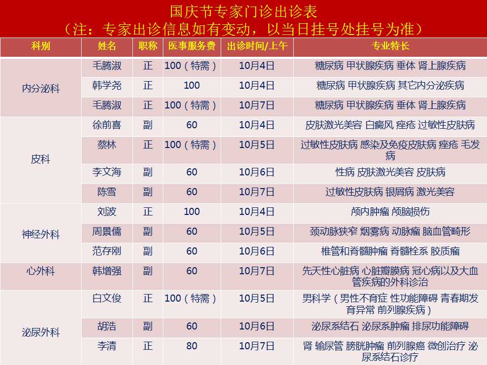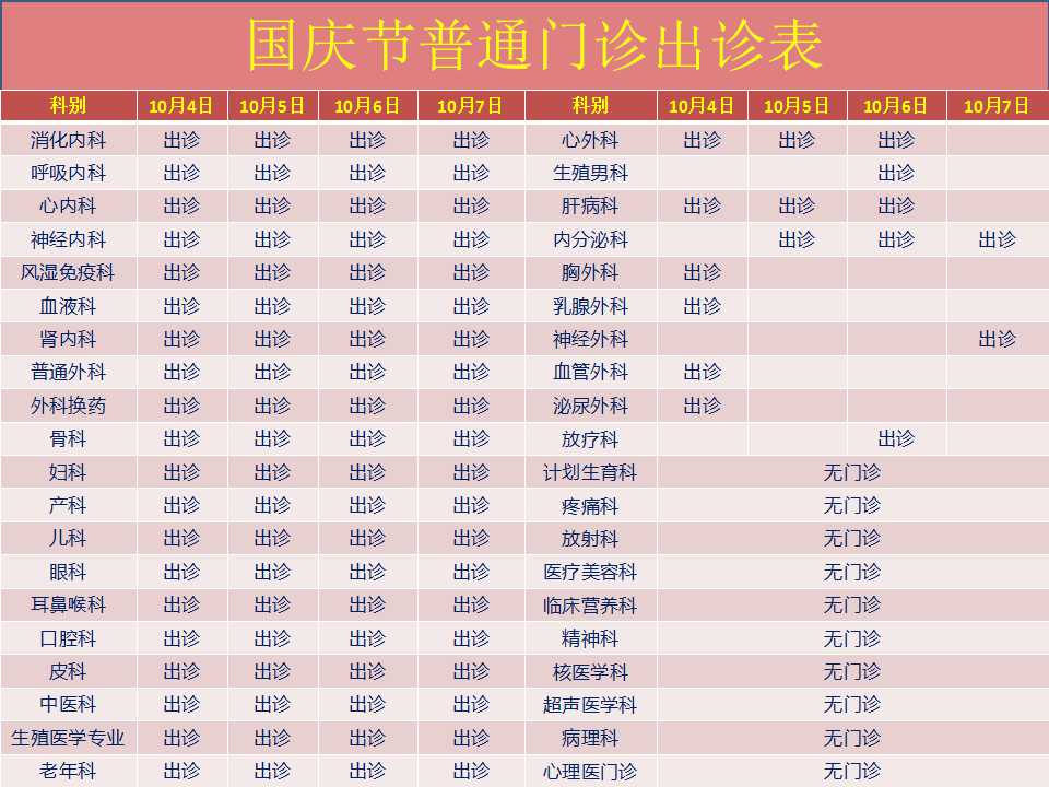 2018年国庆节门诊安排