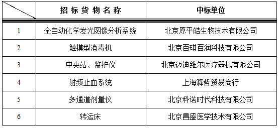我院于2018年11月22日对以下医疗设备进行院内招标,中标结果如下: