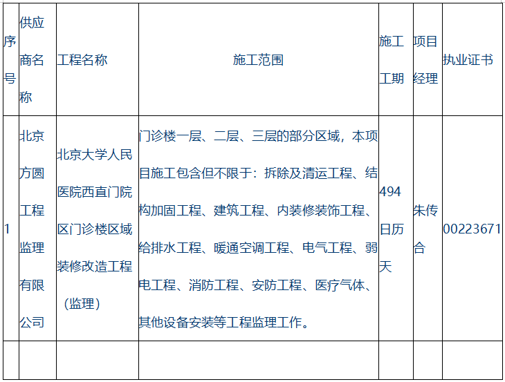 二、项目名称:北京大学人民医院西直门院区门诊楼区域装修改造工程(监理)