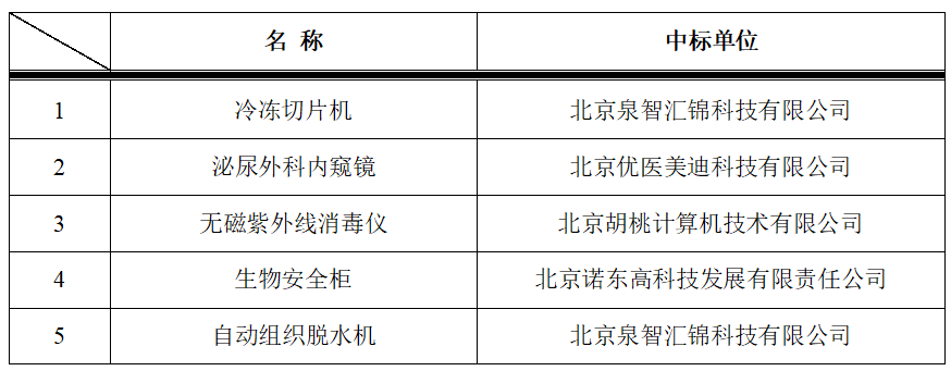 我院于2021年5月27日对以下医疗设备进行院内招标,中标结果如下: