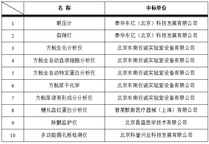 我院于2021年7月13日对以下医疗设备进行院内招标,中标结果如下: