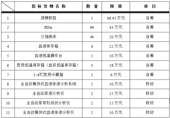 为满足临床科室需求,医学装备处拟对以下设备进行院内招标采购,采购项目的内容及数量:
