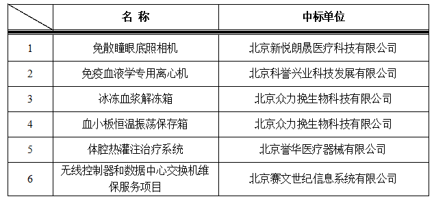 我院于2021年8月19日对以下医疗设备进行院内招标,中标结果如下:
