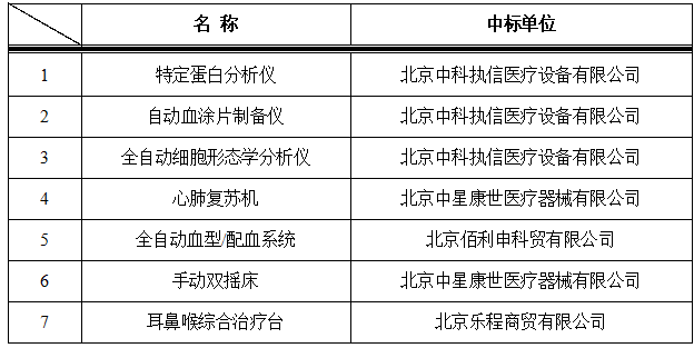 我院于2021年9月2日对以下医疗设备进行院内招标,中标结果如下: