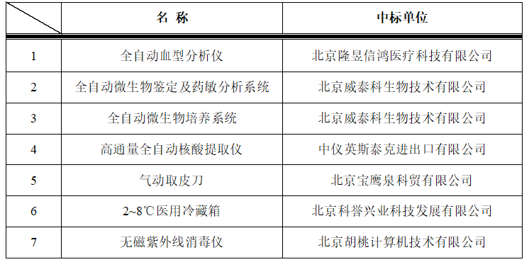 我院于2021年9月16日对以下医疗设备进行院内招标,中标结果如下: