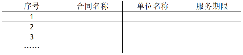 (6)投标公司需提供近3年(2018年、2019年、2020年)承担过医院类似服务项目业绩,提供业绩一览表(格式统一如下,并加盖公章),及对应的合同复印件(至少包含合同首页、签章页并加盖公章)。