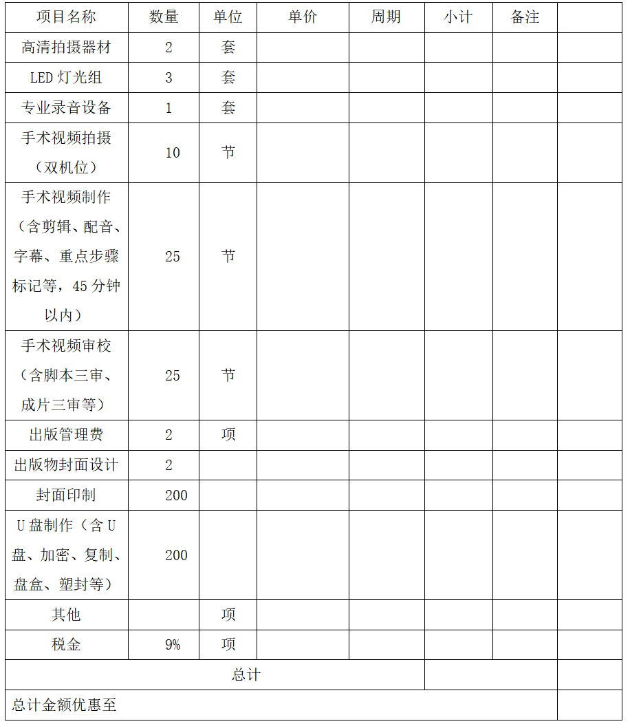 3、会议服务范围:北京大学人民医院,主要包括技能操作和手术操作课程的拍摄、剪辑、制作及后续获取出版号出版等。