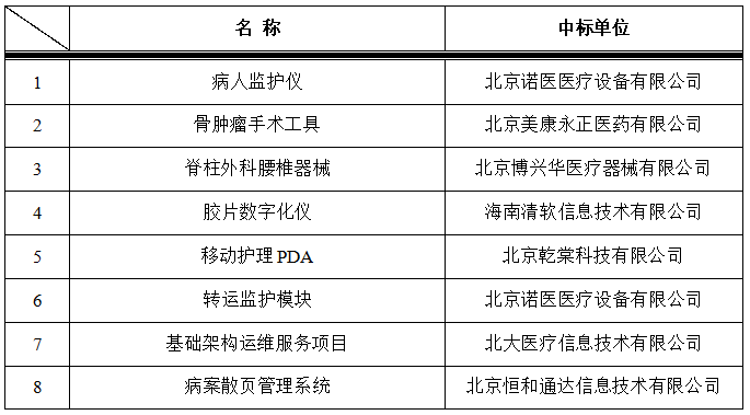 我院于2021年11月11日对以下医疗设备进行院内招标,中标结果如下: