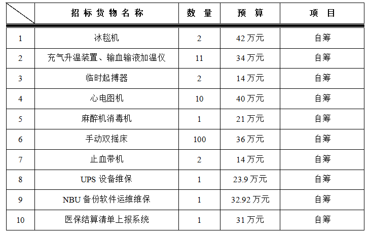 为满足临床科室需求,医学装备处拟对以下设备及服务进行院内招标采购,采购项目的内容及数量: