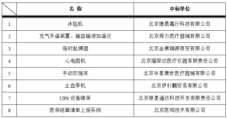 我院于2021年12月23日对以下医疗及信息项目进行院内招标,中标结果如下: