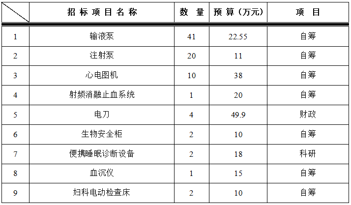 为满足临床科室需求,医学装备处拟对以下设备进行院内招标采购,采购项目的内容及数量: