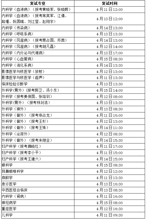 学院复试采取网络面试的形式,每位考生面试时间不少于30分钟。面试对学生的学术背景和科研能力、外语水平、专业知识、综合素质等方面进行综合考察。报考专业学位博士研究生的考生,临床思维、临床技能考核将于面试中进行,采用百分制,60分为及格,上述考核任意一项不及格者不予录取。